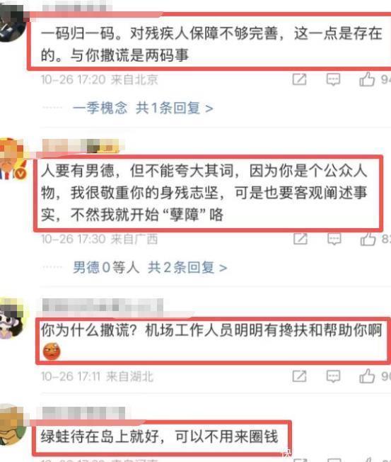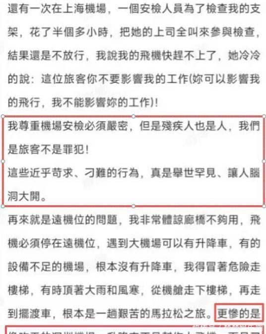 很多人就留言说他这话说得太夸张就是在故意带节奏,可他根本就没有意识到自己的问题。反而又发了一篇长文,把火从深圳机场烧到了整个大陆的机场,他点名说自己在南京、上海也被人找过麻烦,尤其是过安检的时候,人家非要检查他腿上的金属支架。